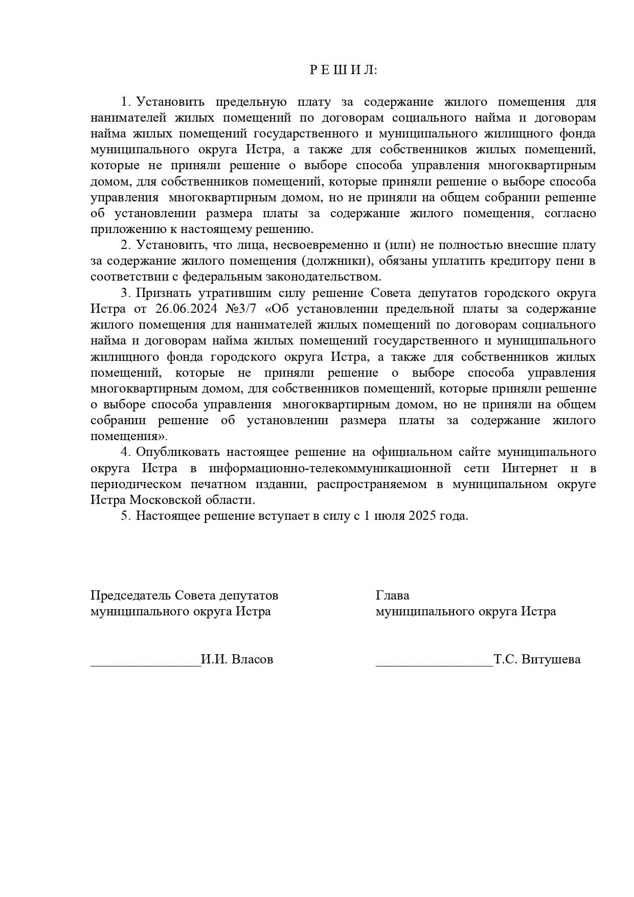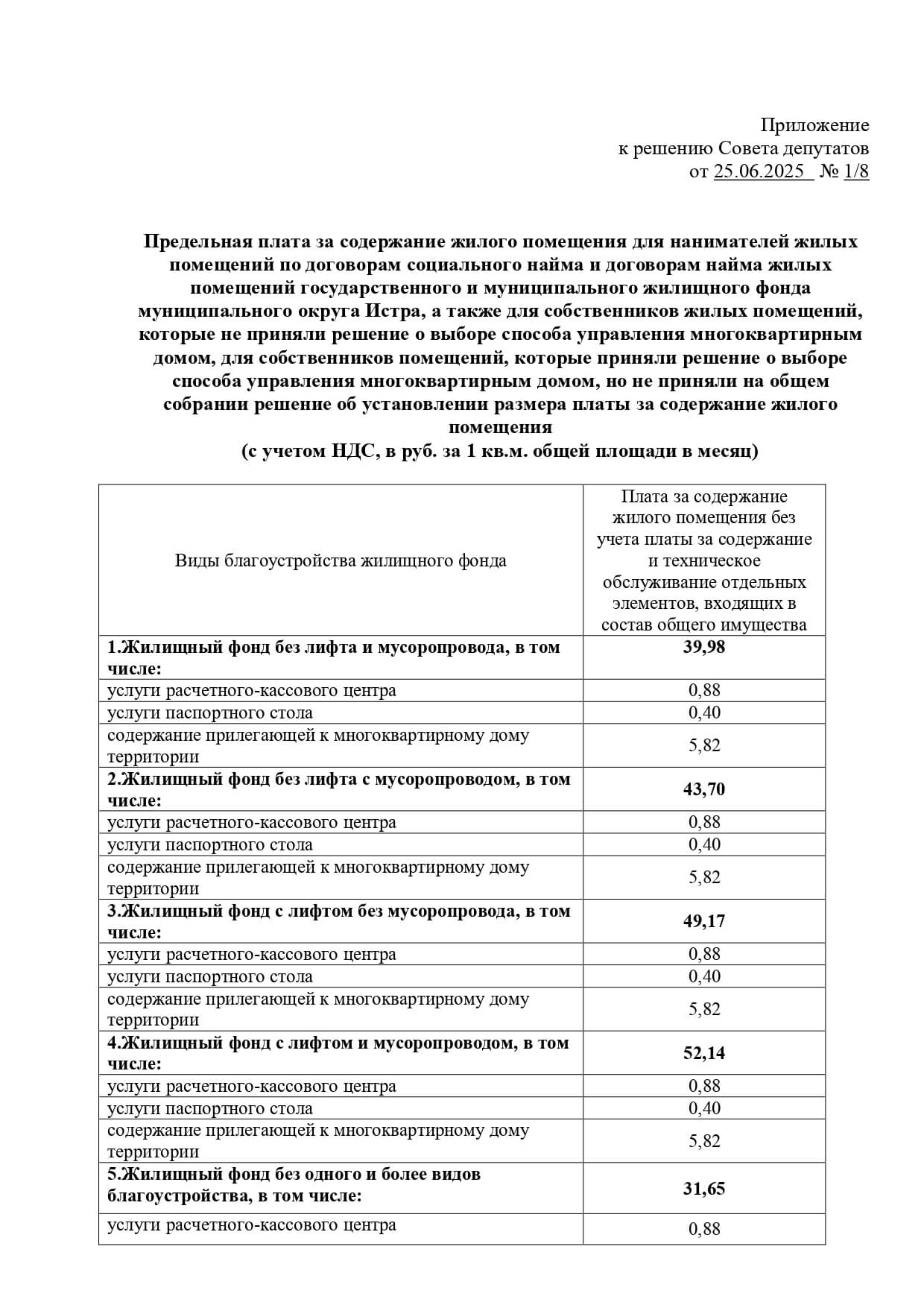 С 01 декабря 2025 года меняется тариф на содержание и ремонт жилого фонда по итогам проведения общего собрания собственников и на основании Решения Совета депутатов м. о. Истра от 25.06.2025 г. № 1/8:
